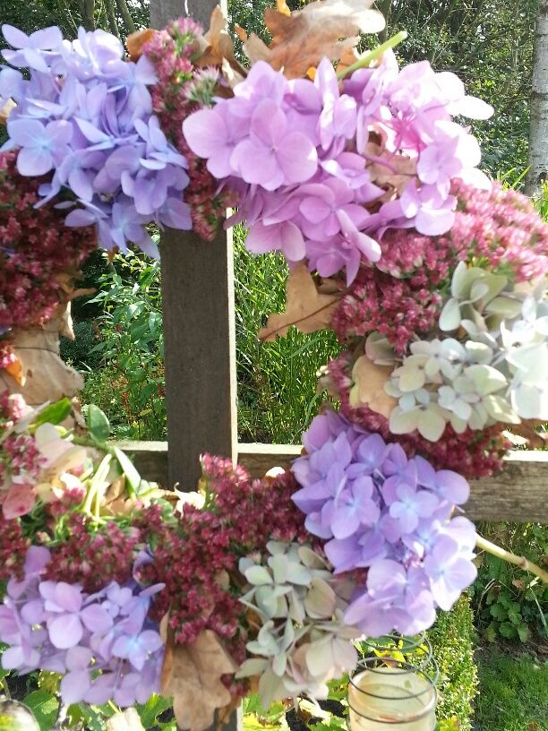 An so einem schönen Altweiber-Sommertag wie heute konnte ich aber nicht widerstehen und habe vorab schon mal einen schnellen Herbstkranz gebunden: