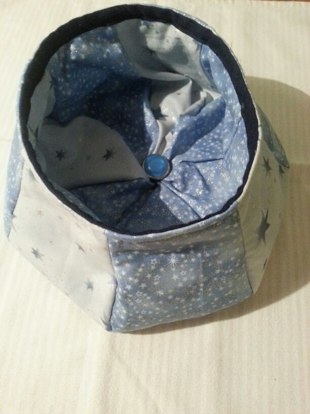 Eine Schale aus schönem Stoff versteckt wunderbar das Strickzeug oder Nähsachen.