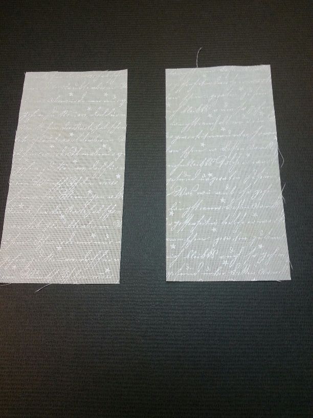 Unter jeweils einem Stück Stoff etwas Bügelflies bügeln (auf dem folgendem Foto habe ich Bügelflies auf der linken Seite vor