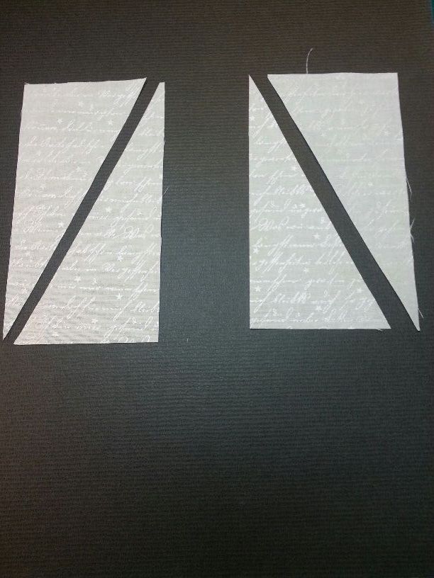 Diese einmal mit einem Rollschneider und Lineal gegengleich diagonal durchschneiden.