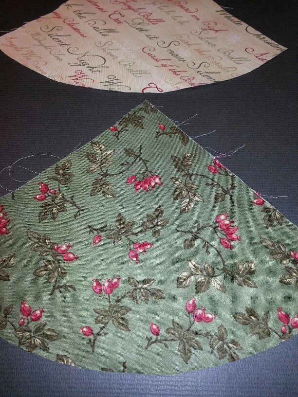 Zur Festigkeit ein Stück Bügelflies nach der Schablone ausschneiden und auf die linke Seite des Außenstoffs bügeln. Beide Stoffe rechts auf rechts legen und die Rundung nähen