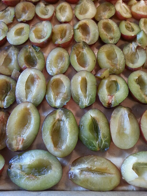 herstellen und auf die Pflaumen verteilen.