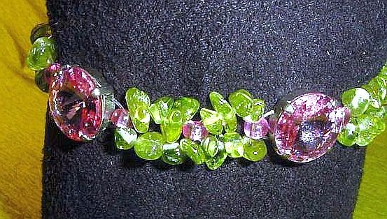 Das Armband immer mal wieder um den Arm legen, um die Länge zu prüfen. Möglicherweise werden vielleicht einige Halbedelsteinsplitter zusätzlich benötigt.