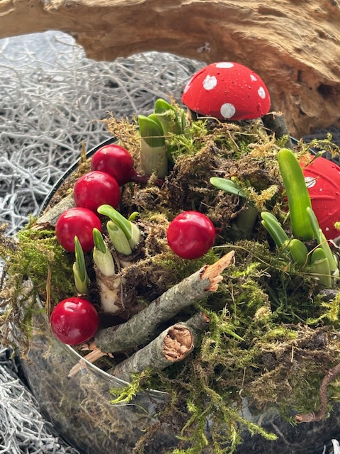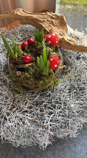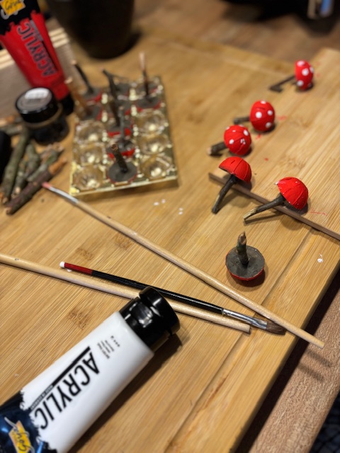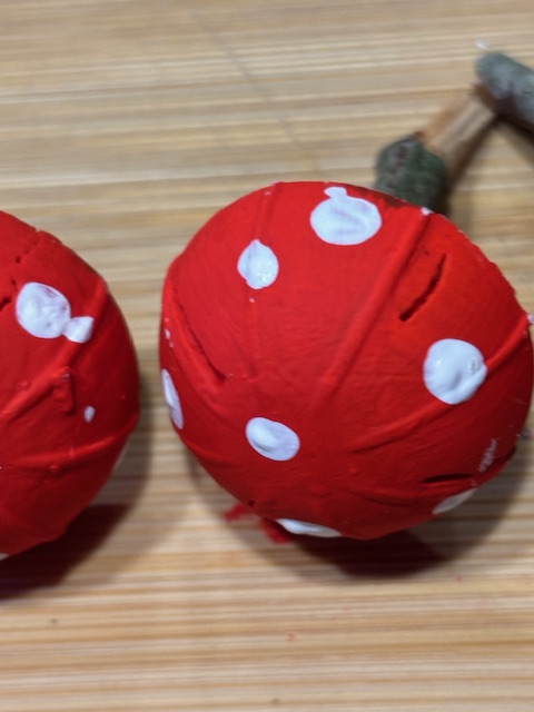 Zusammen mit Enkelkindern habe ich diese niedlichen Fliegenpilze gebastelt.